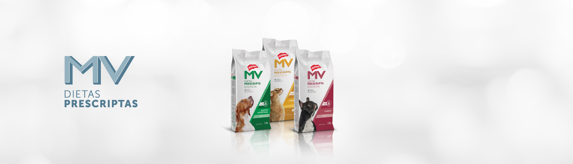 Ver línea de productosMV Dietas Prescriptas es el suplemento nutricional para perros y gatos que sufren desórdenes que requieren una dieta específica, sinergizando la acción terapéutica con el tratamiento farmacológico.